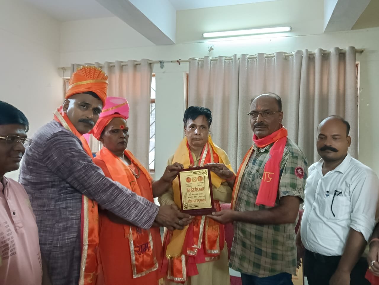 आगरा । विगत 20 वर्षों से पत्रकारिता जगत में नये कीर्तिमान स्थापित करने वाले हिन्दी दैनिक सांध्य पहल समाचार पत्र की राष्ट्र और समाज के प्रति समर्पण भावना को देखते हुए अखिल भारत हिन्दू महासभा के शीर्ष नेताओं ने सांध्य पहल को राष्ट्रीय गौरव पुरस्कार से नवाजा है। 25 जुलाई को संजय पैलेस स्थित यूथ हॉस्टल में आयोजित महा सम्मेलन में बतौर मुख्य अतिथि नई दिल्ली से आगरा पहुंचे अखिल भारत हिन्दू महासभा के राष्ट्रीय अध्यक्ष श्री रविन्द्र कुमार द्विवेदी द्वारा राष्ट्र की परंपरा के पत्रकार सांध्य पहल के उत्तर प्रदेश संपादक सन्तोष शर्मा को कार्यक्रम में बतौर विशिष्ट अतिथि आमंत्रित किया गया , जहां राष्ट्र और समाज के प्रति उनकी प्रतिबद्धता को देखते हुए उनका जोशीला अभिनंदन किया और उनकी राष्ट्रवादी पत्रकारिता की मुक्त कंठ से प्रशंशा और सराहना करते हुए सांध्य पहल समाचार पत्र को राष्ट्रीय गौरव सम्मान देकर सम्मानित किया। इस दौरान हिन्दू महासभा के राष्ट्रीय अध्यक्ष रविन्द्र कुमार द्विवेदी ने कहा कि पत्रकारिता लोकतंत्र का चौथा स्तंभ है। पत्रकार सदैव अपनी जान जोखिम में डालकर समाज और राष्ट्र के प्रति अपने कर्तव्यों का निर्वाह करता है। पत्रकारों की सुरक्षा और हितों पर शासन प्रशासन का मौन पत्रकार जगत के लिए घातक सिद्ध हो सकता है। पत्रकारों की सुरक्षा और उनकी अन्य समस्याओं के समाधान के लिए हिन्दू महासभा कृति संकल्पित है। सांध्य पहल को मिले राष्ट्रीय गौरव सम्मान से अभिभूत प्रधान संपादक महोदय श्री रामविलास शर्मा ने सन्तोष शर्मा को शुभकामनाएं दीं और अखिल भारत हिन्दू महासभा के शीर्ष नेतृत्व का धन्यवाद और साधुवाद जताया। इस दौरान हिन्दू महासभा के राष्ट्रीय प्रवक्ता संजय जाट, उत्तर प्रदेश अध्यक्ष मनोज कुमार शर्मा, प्रदेश संयोजक गोपाल सिंह चाहर, महामंत्री विवेक गर्ग आदि सैकड़ों राष्ट्र भक्त मौजूद थे।