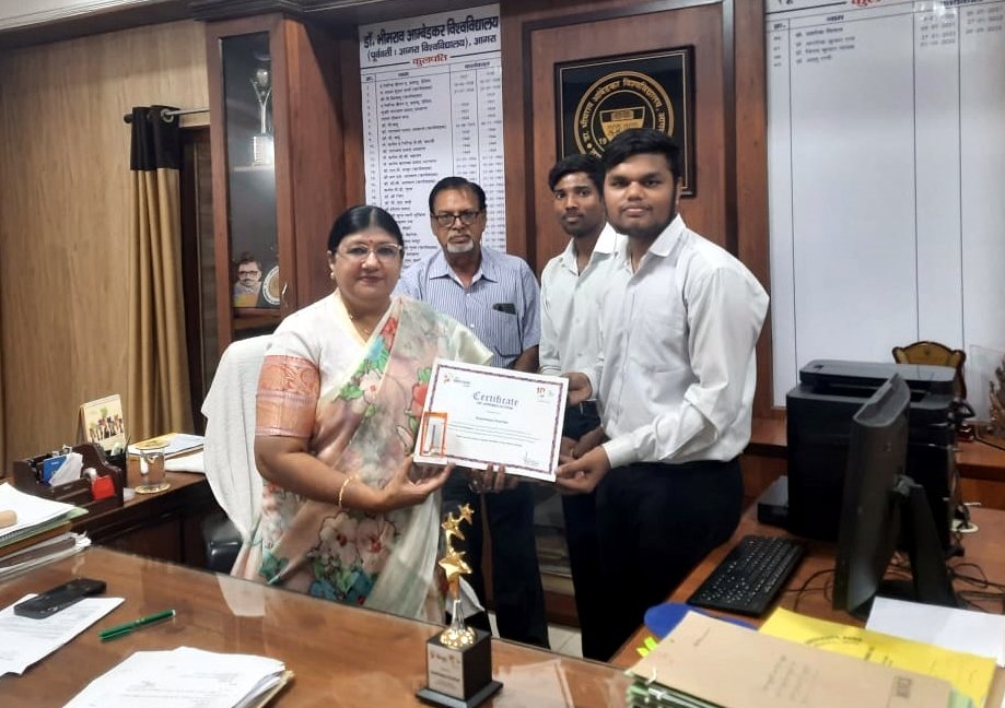 आगरा: डॉ. भीमराव आंबेडकर विश्वविद्यालय ने केंद्र सरकार के माय जीओवी (माय गोव) के 10 वर्ष पूर्ण होने पर आयोजित मायगोव कैंपस अंबेसडर कार्यक्रम में देशभर में प्रथम स्थान प्राप्त किया है। यह उपलब्धि विश्वविद्यालय के पालीवाल पार्क परिसर में संचालित पुस्तकालय एवं सूचना विज्ञान विभाग में बीए कला तृतीय सेमेस्टर के छात्र कन्हैया कुमार ने प्राप्त की है। कन्हैया कुमार के उत्कृष्ट योगदान के लिए केंद्रीय इलेक्ट्रॉनिक्स और सूचना प्रौद्योगिकी मंत्री जितिन प्रसाद ने दिल्ली में 26 जुलाई को हुए कार्यक्रम में शील्ड देकर सम्मानित किया।
